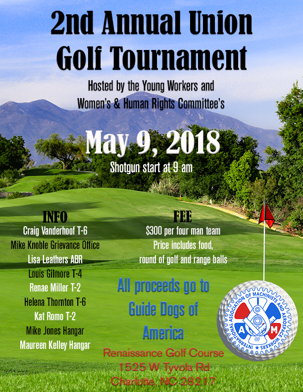 The 2018 Union Golf Tournament, Sponsored by the Young Workers and Women’s & Human Rights Committees is now open for registration! The Tournament will be Wednesday, May 9th at Renaissance Golf Course in Charlotte. Shotgun start at 9am. See the flyer for...